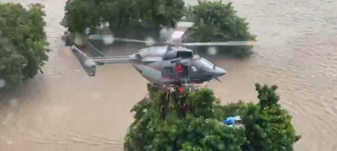 Numa imagem a que o nosso jornal teve acesso mostra o momento em que a equipa de salvamento efectuou o resgate de cinco pessoas da mesma família que permaneceu dois dias em cima de uma árvore.
